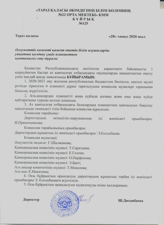 13 октябрь 2020 0 1 2 3 4 5 Әлеуметтік көмекті қажет ететін білім алушыларды уақытша қолдану үшін планшетпен қамтамасыз ету туралы бұйрық