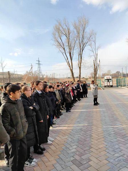 Лучше раз увидеть!.. 23 декабря 2021 года в СШ №22 проводилась сейсмотренировка на тему «Землетрясение» с участием сотрудников личного состава «Оперативного спасательного отряда» УЧС города Тараз и Центра медицины катастроф. Руководитель-организатор НВиТП Д.Сабиров в 11:00 часов объявил сигнал «Тревога», все сотрудники и обучающиеся в срочном порядке эвакуировались из здания школы. Роли пострадавших сыграли старший вожатый Д.Сайгин и учитель физкультуры А.Құдабай. Под руководством офицера УЧС г.Тараз старшего лейтенанта Д.Келиса эвакуация, оказание ПМП "пострадавшим" прошла успешно. #школа22ОБЖ