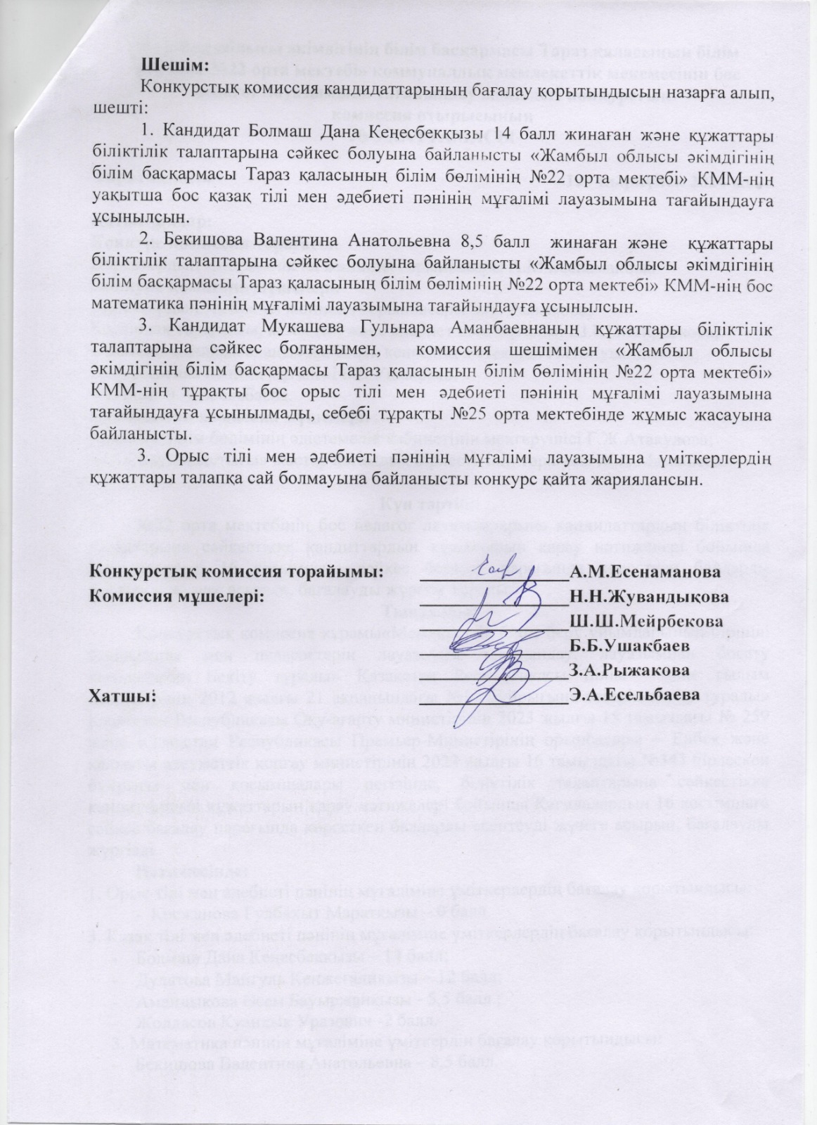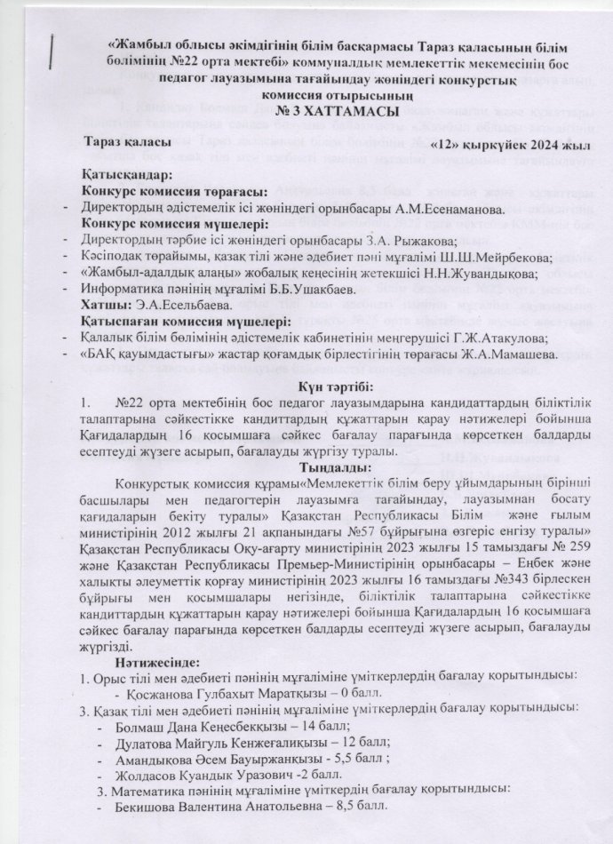 12 сентябрь 2024 0 1 2 3 4 5 Бос педагог лауазыма тағайындау конкурсының нәтижелері туралы хаттамалар