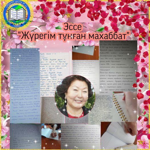 Учащиеся нашей школы приняли участие в написании эссе "Жүрегім тұнған махаббат", посвященном празднованию юбилея Сары Алпысовны Назарбаевой, основателя программы по возраждению нравственно-духовных ценностей "Самопознание".