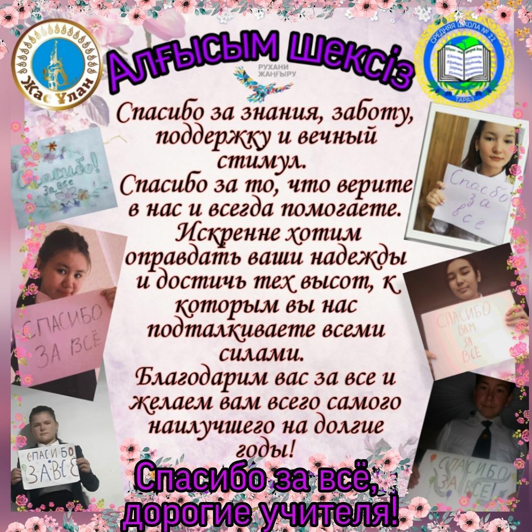 01 март 2021 0 1 2 3 4 5 Алғысым шексіз / ~День благодарности~ Теплые и добрые поздравления от жасулановцев 8 "Б" класса в День благодарности.