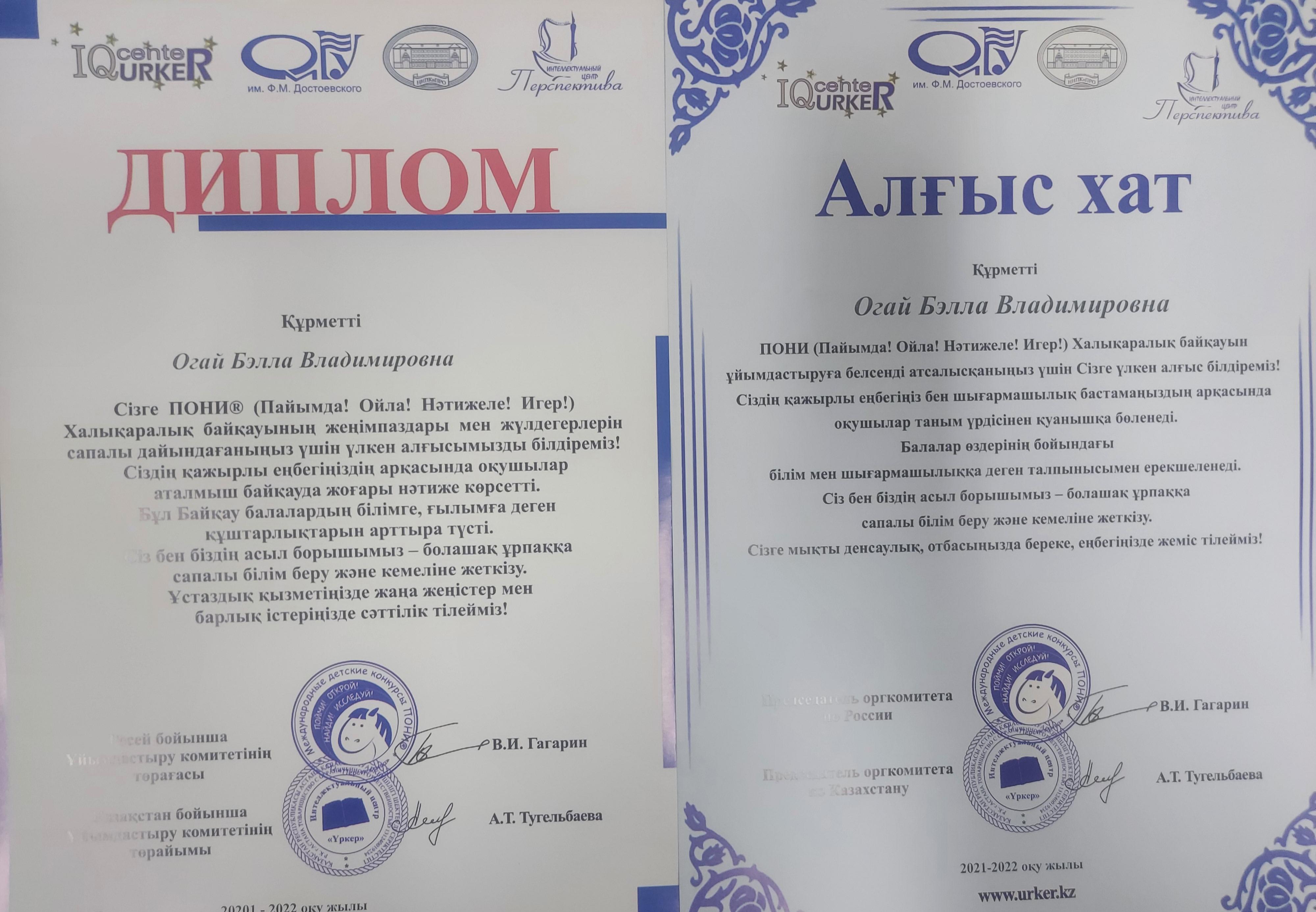 Поздравляем обучащихся 3-4 классов и классных руководителей Огай Б.В. и Канаеву В.А., подготовивших победителей Международного интелектуального конкурса "Пони - Открывает мир" !!! 💐💐💐