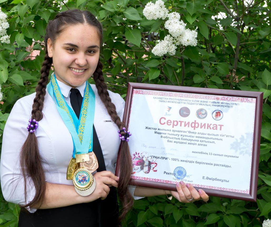 Русалина Пряхина совсем скоро окончит школу, но уже сегодня она стала обладателем грантов на обучение в казахских отделениях двух вузов Тараза. Русская девушка из школы с русским языком обучения с трепетом и любовью относится к казахскому языку и культуре.