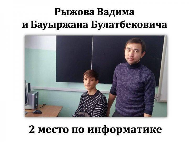 6 | Рыжов Вадим | информатика | 9 | Ушакбаев Б.Б. |