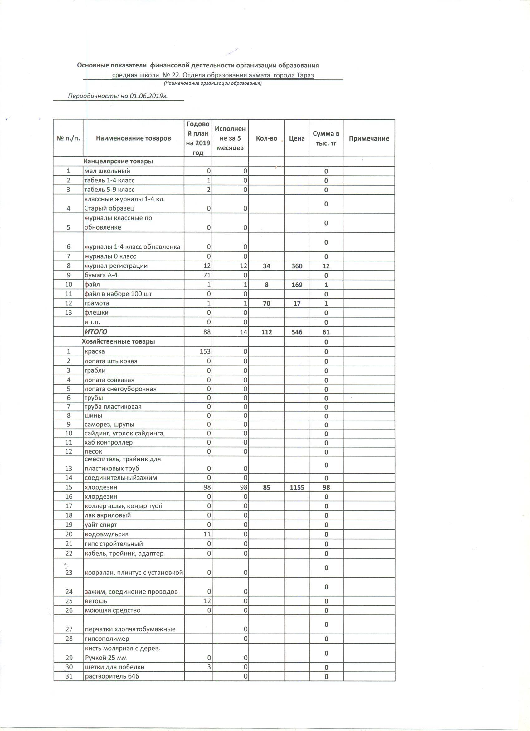 21 июнь 2019 0 1 2 3 4 5 Основные показатели финансовой деятельности организации образования по состоянию на "01" апреля 2019г.