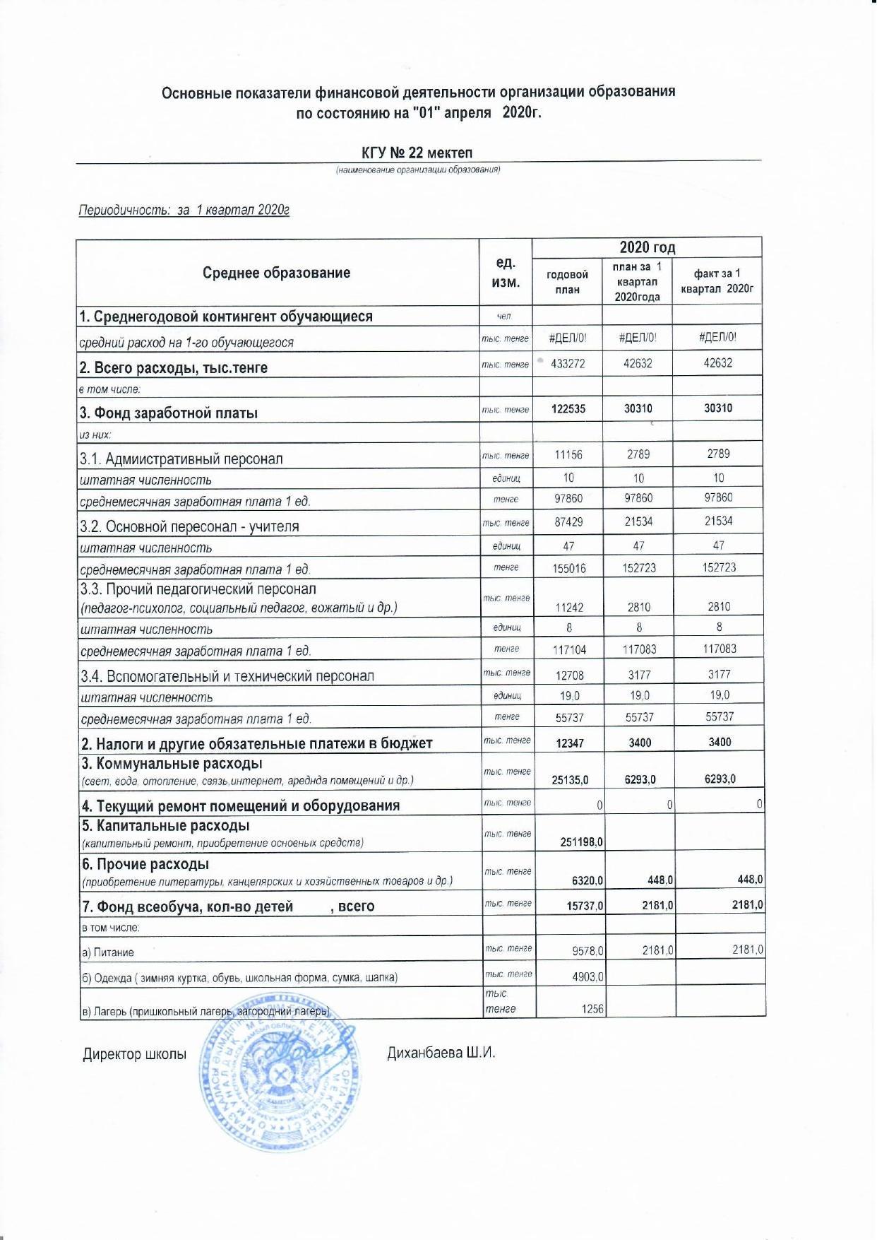 Основные показатели ФД СШ22 » №22 орта мектеп