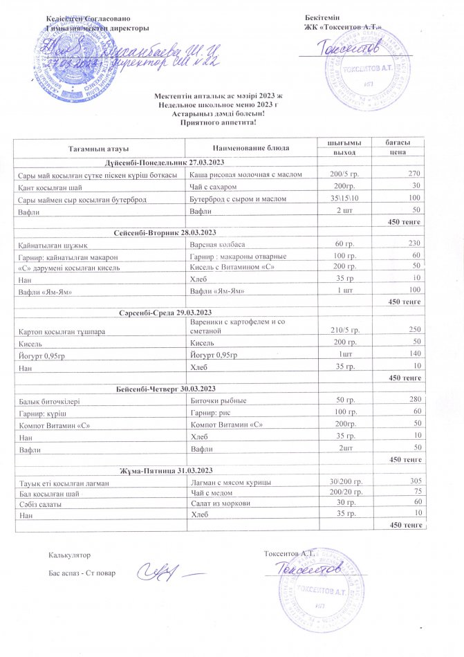 » » 2023 жылдың 27 наурызынан 31 наурызына дейінгі ас мәзірі