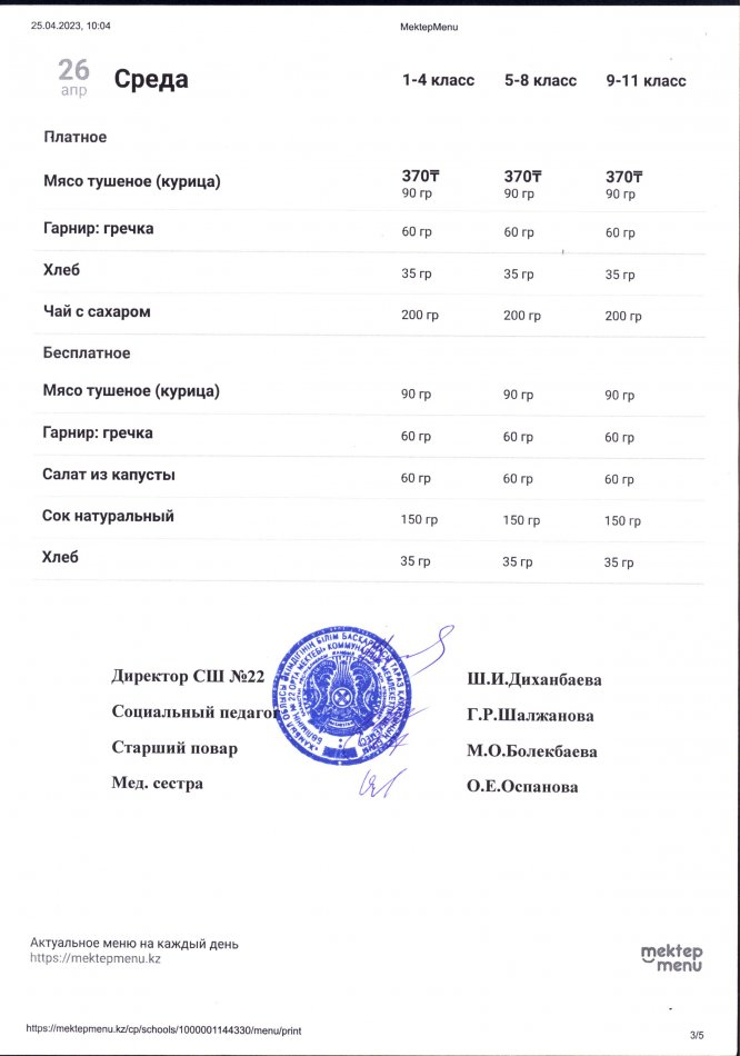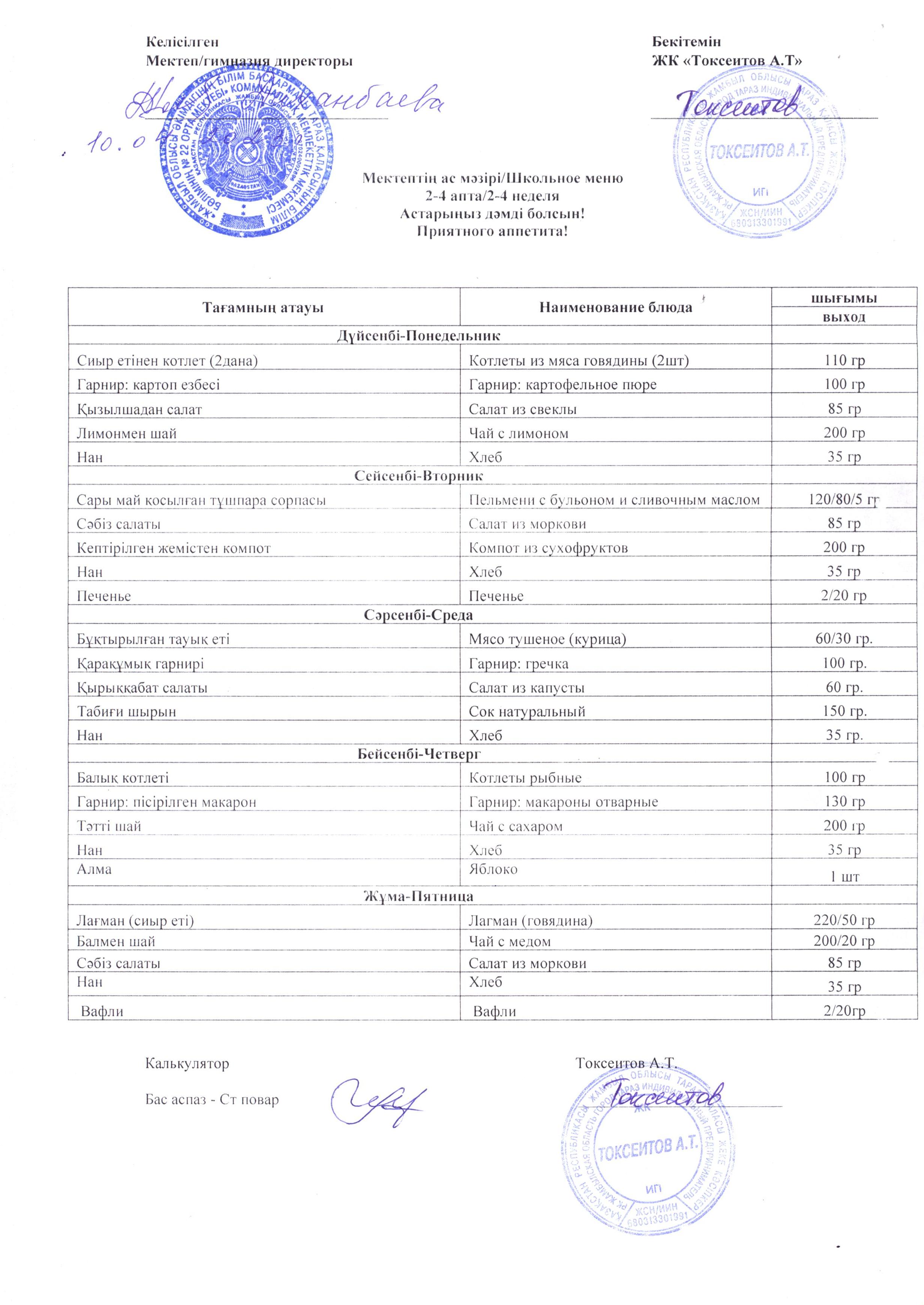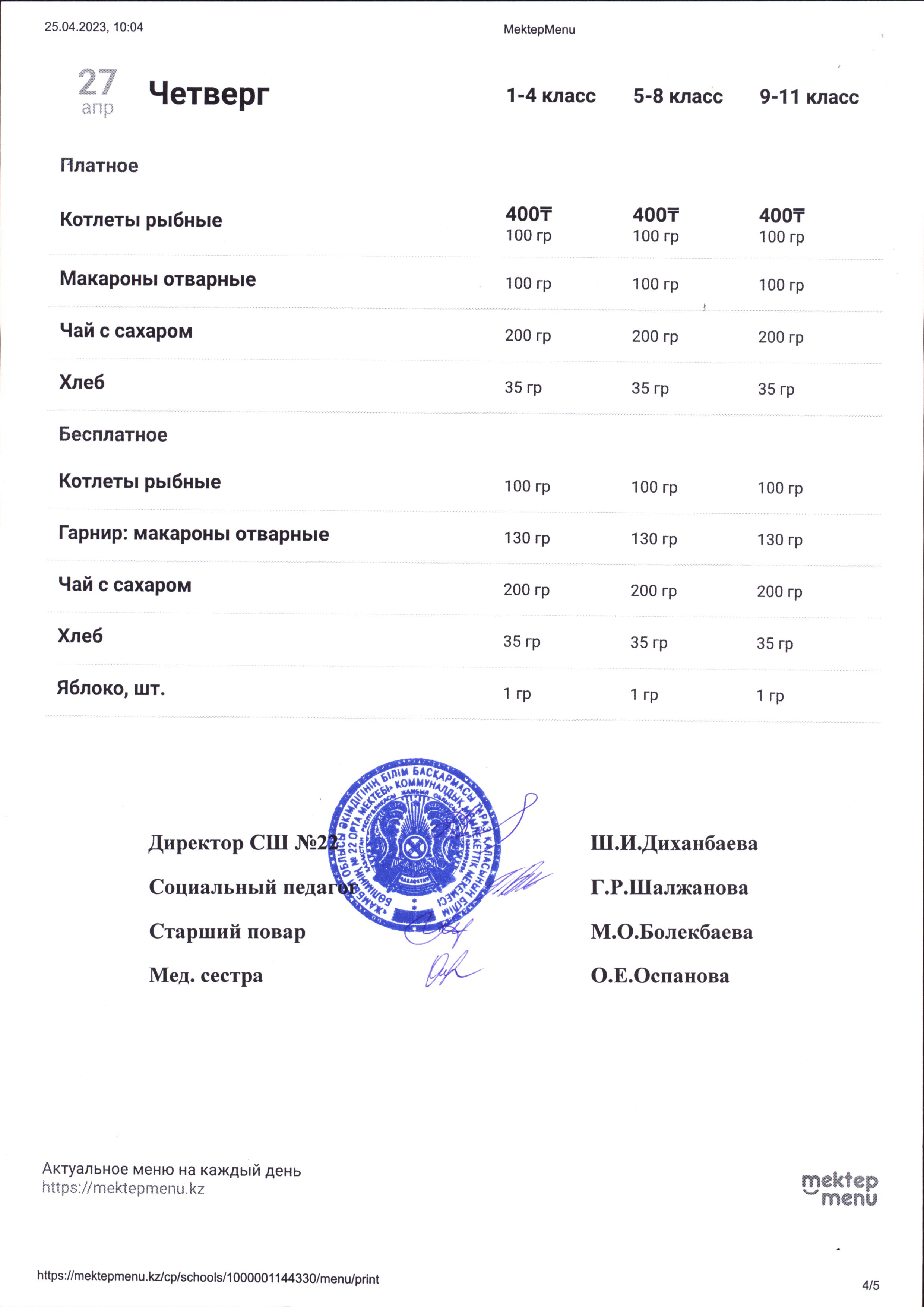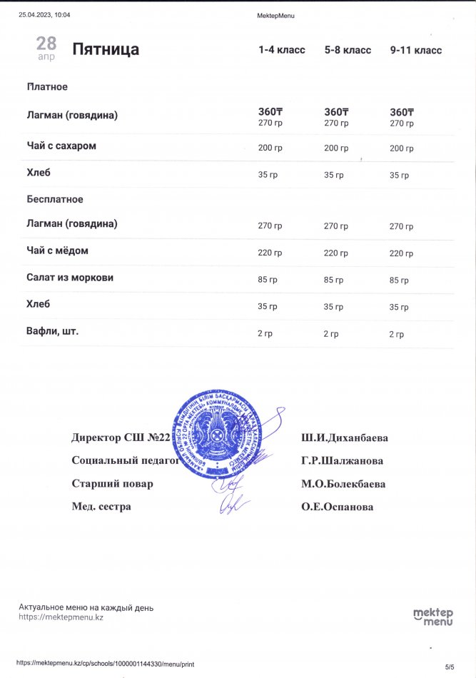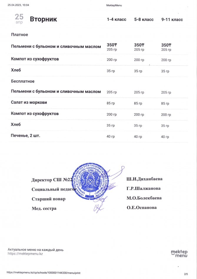 24 апрель 2023 0 1 2 3 4 5 2023 жылдың 24 сәуірі мен 28 сәуірі аралығындағы ас мәзірі (апталық және күндік)