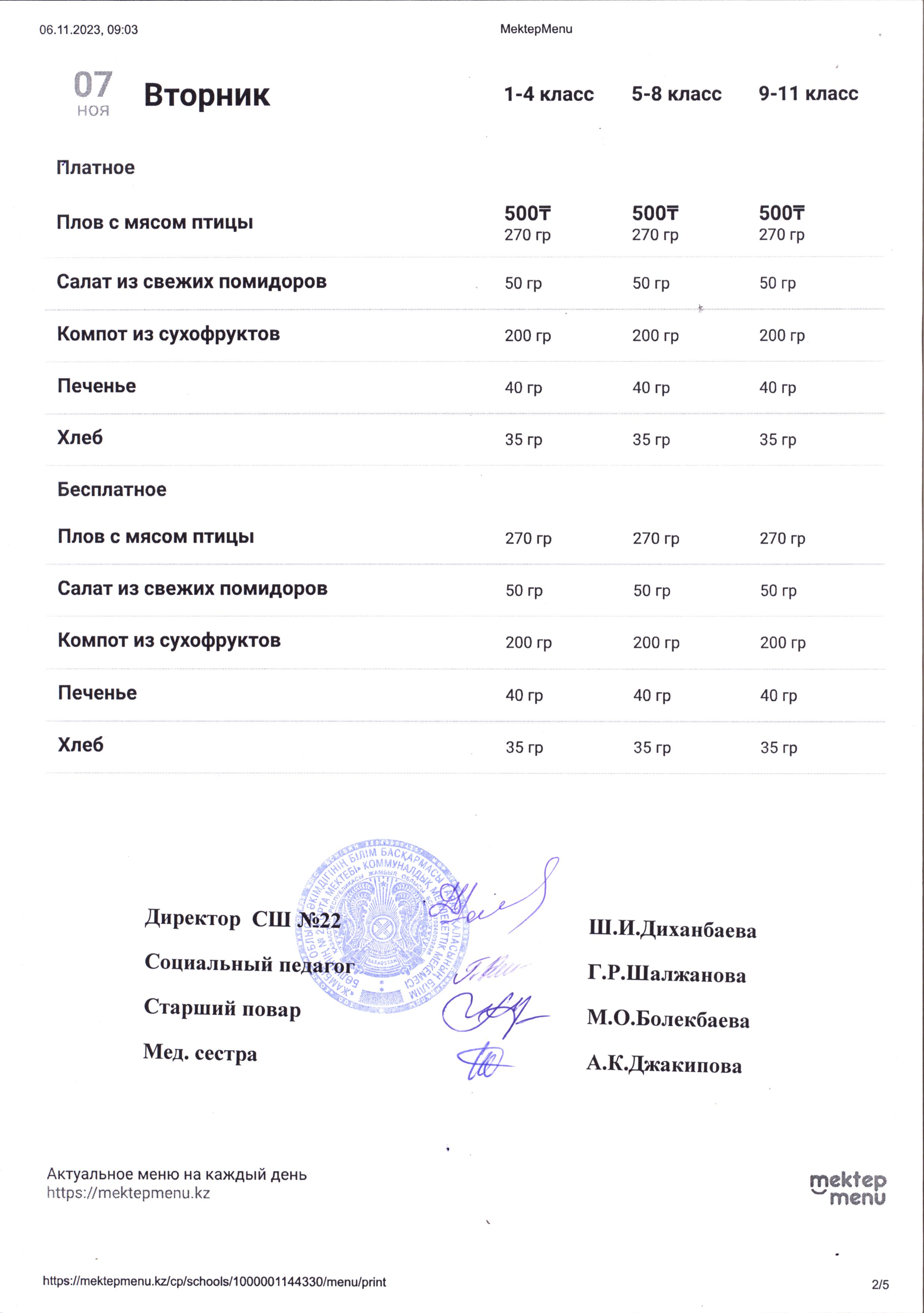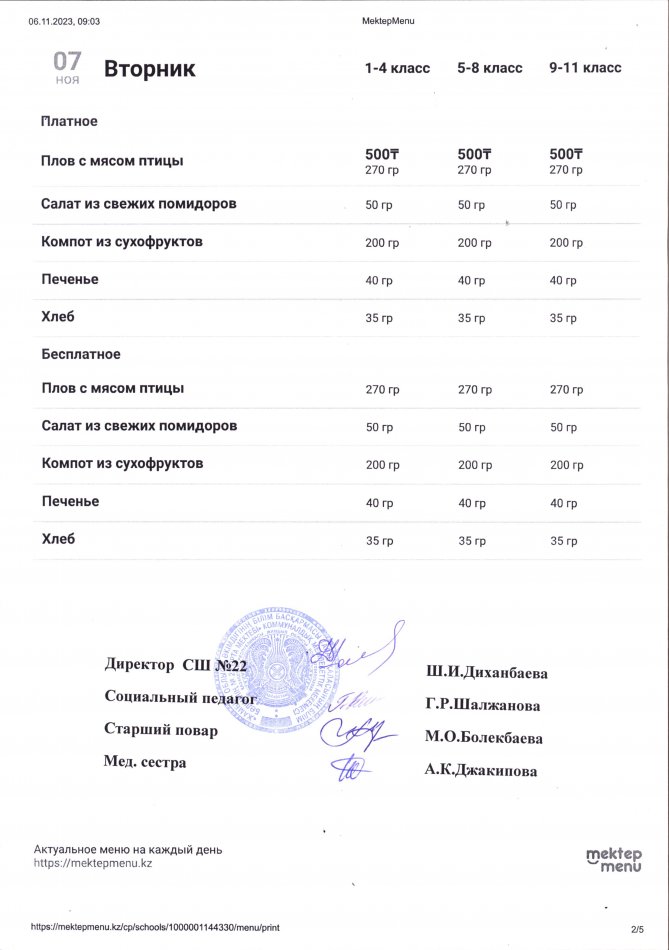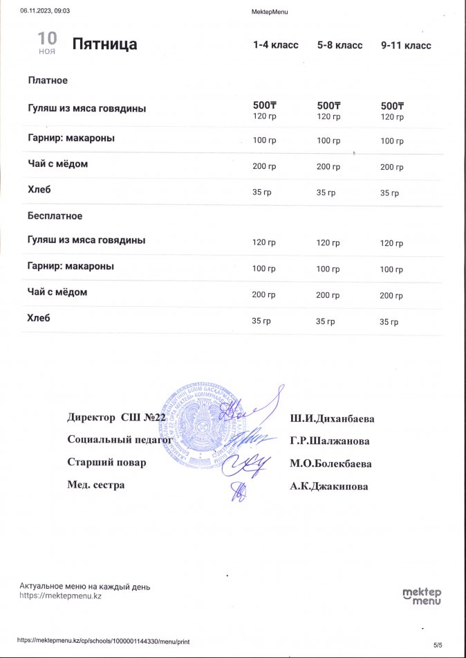 06 ноябрь 2023 0 1 2 3 4 5 2023 жылдың 6 қарашасы мен 10 қарашасы аралығындағы тегін ыстық тамақ ас мәзірі Меню бесплатного питания с 6 по 10 ноября 2023 года