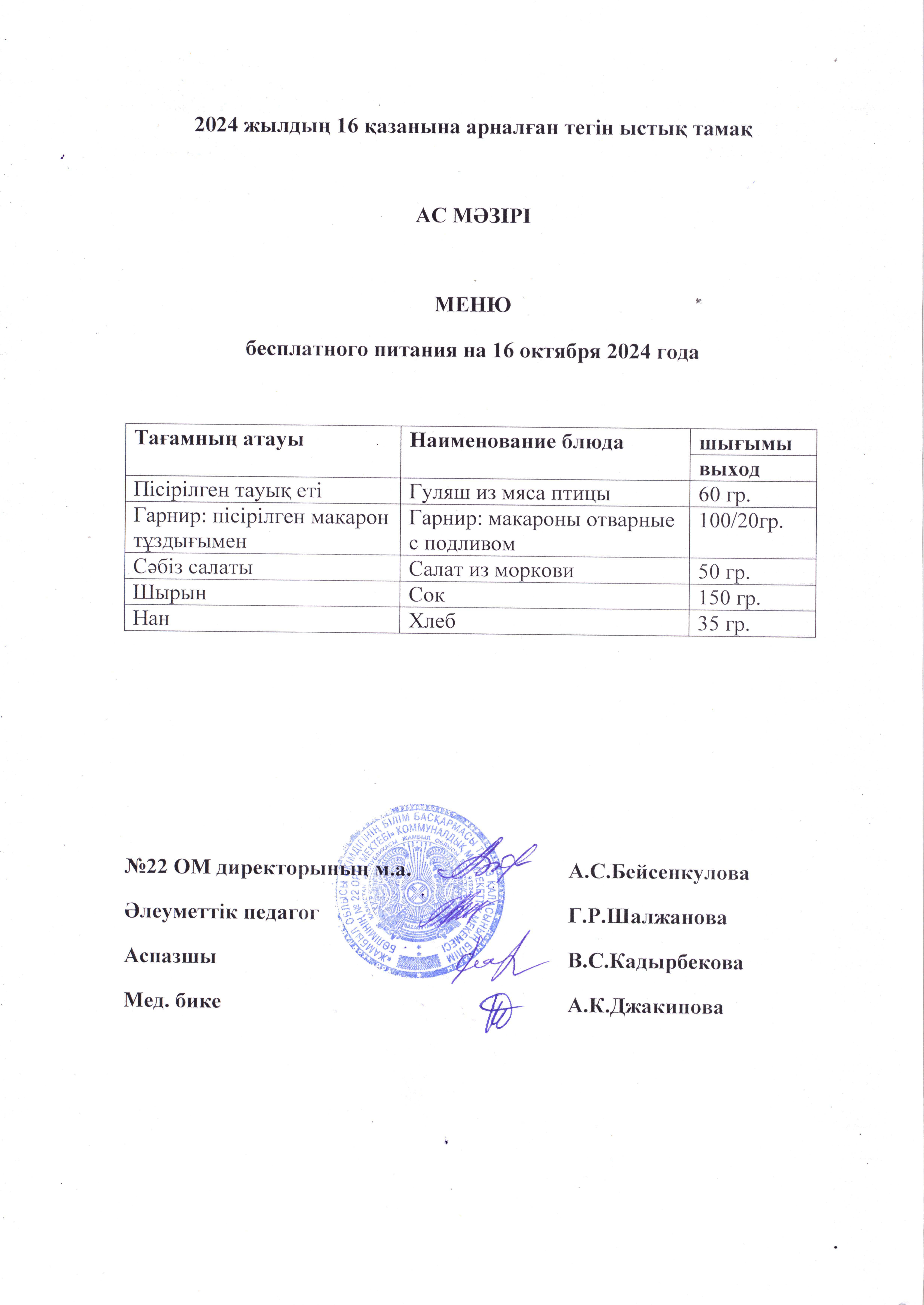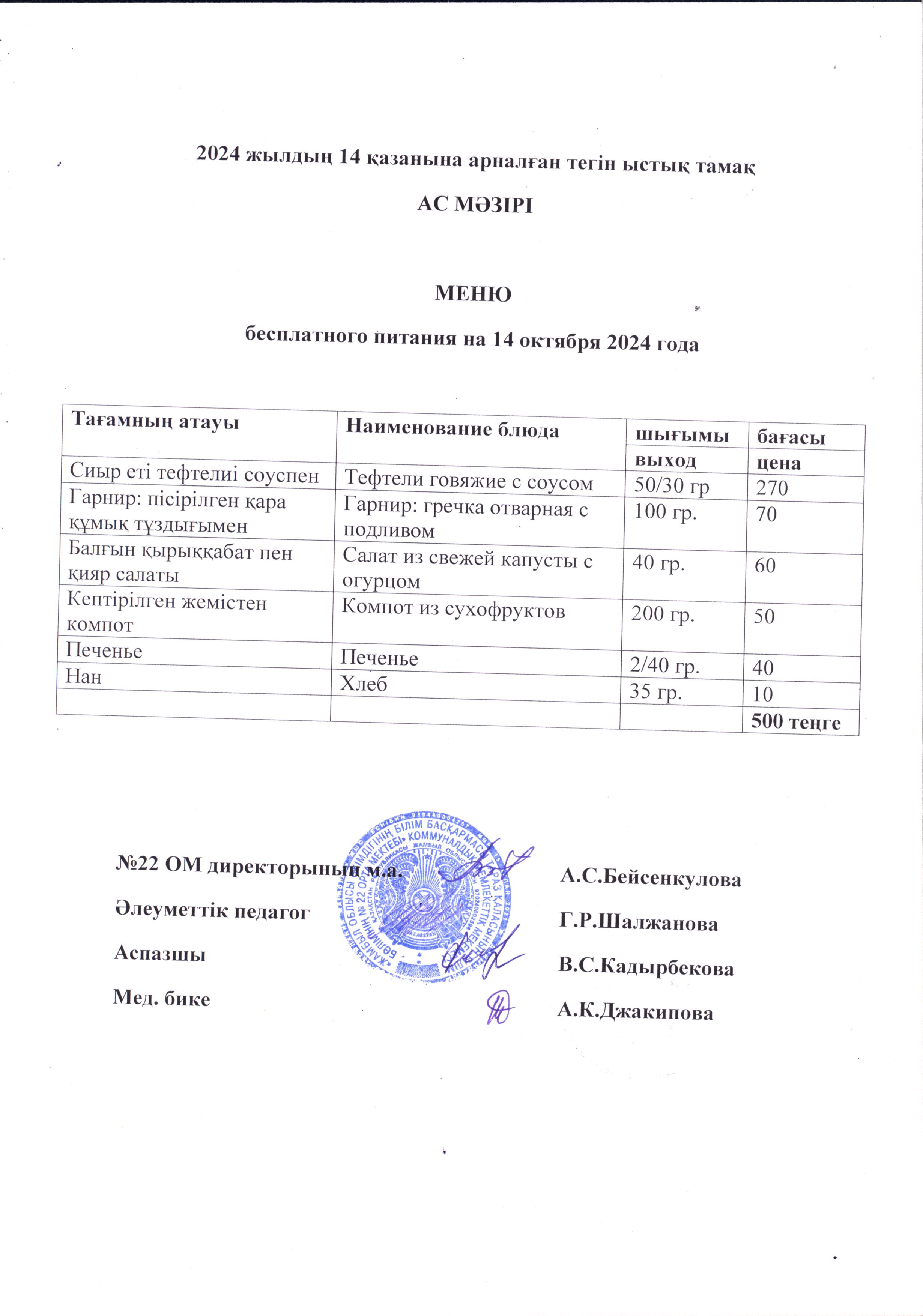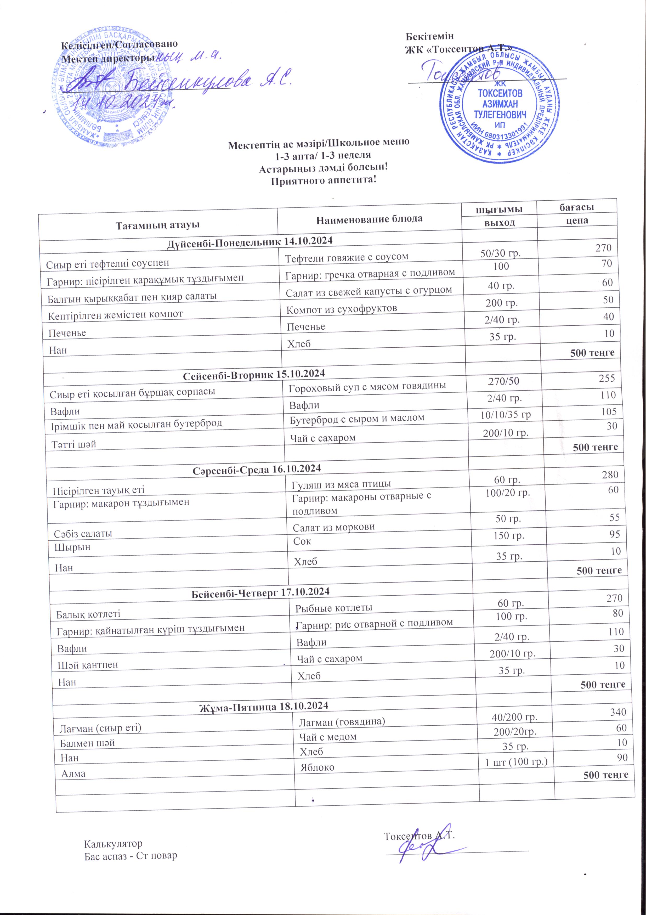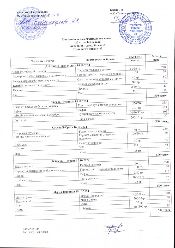 14 октябрь 2024 0 1 2 3 4 5 2024 жылдың 14 қазаны мен 18 қазаны аралығындағы апталық және күндік ас мәзірі