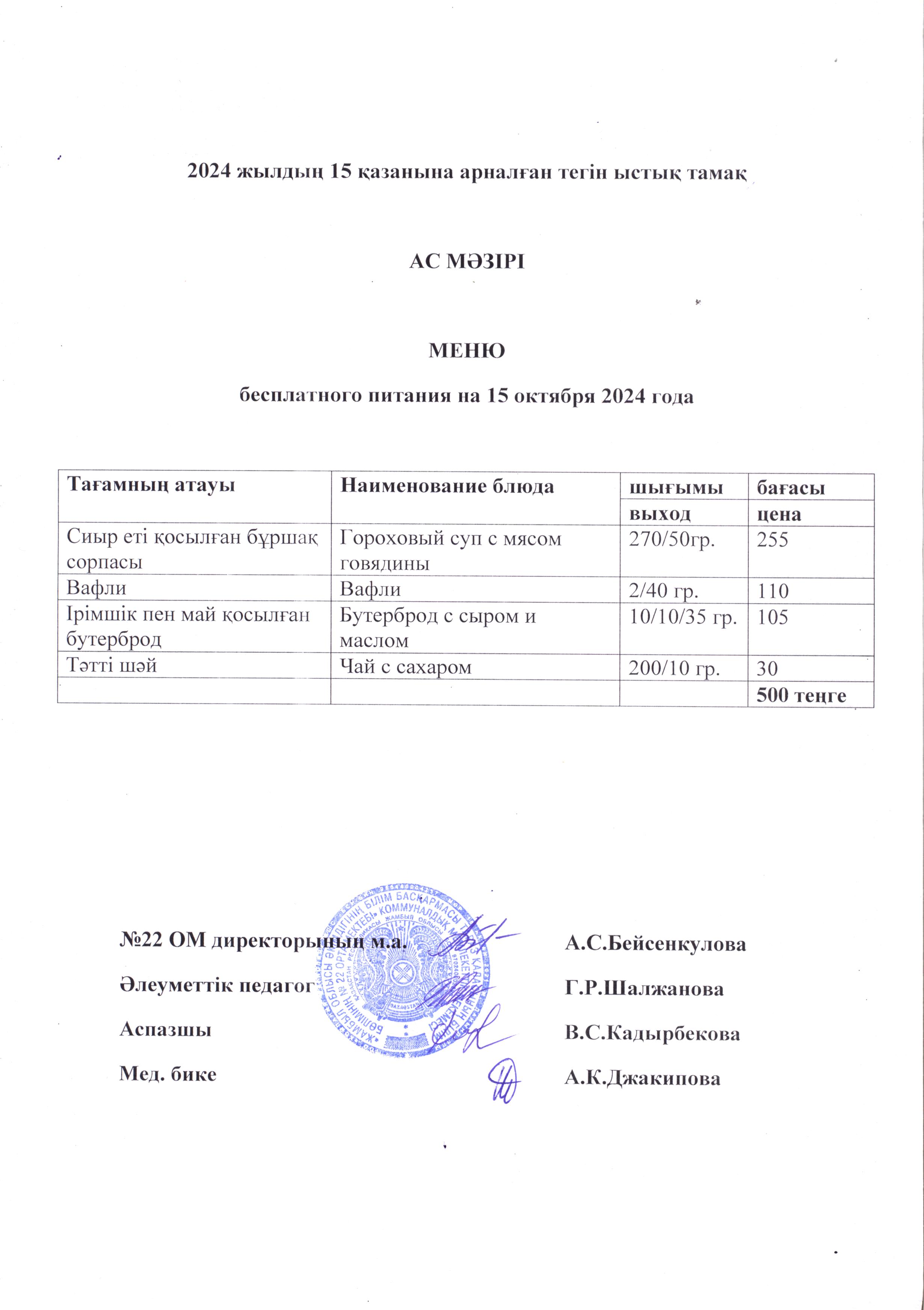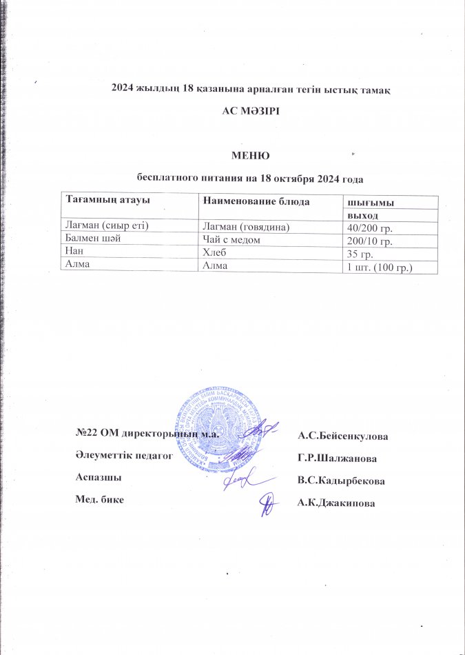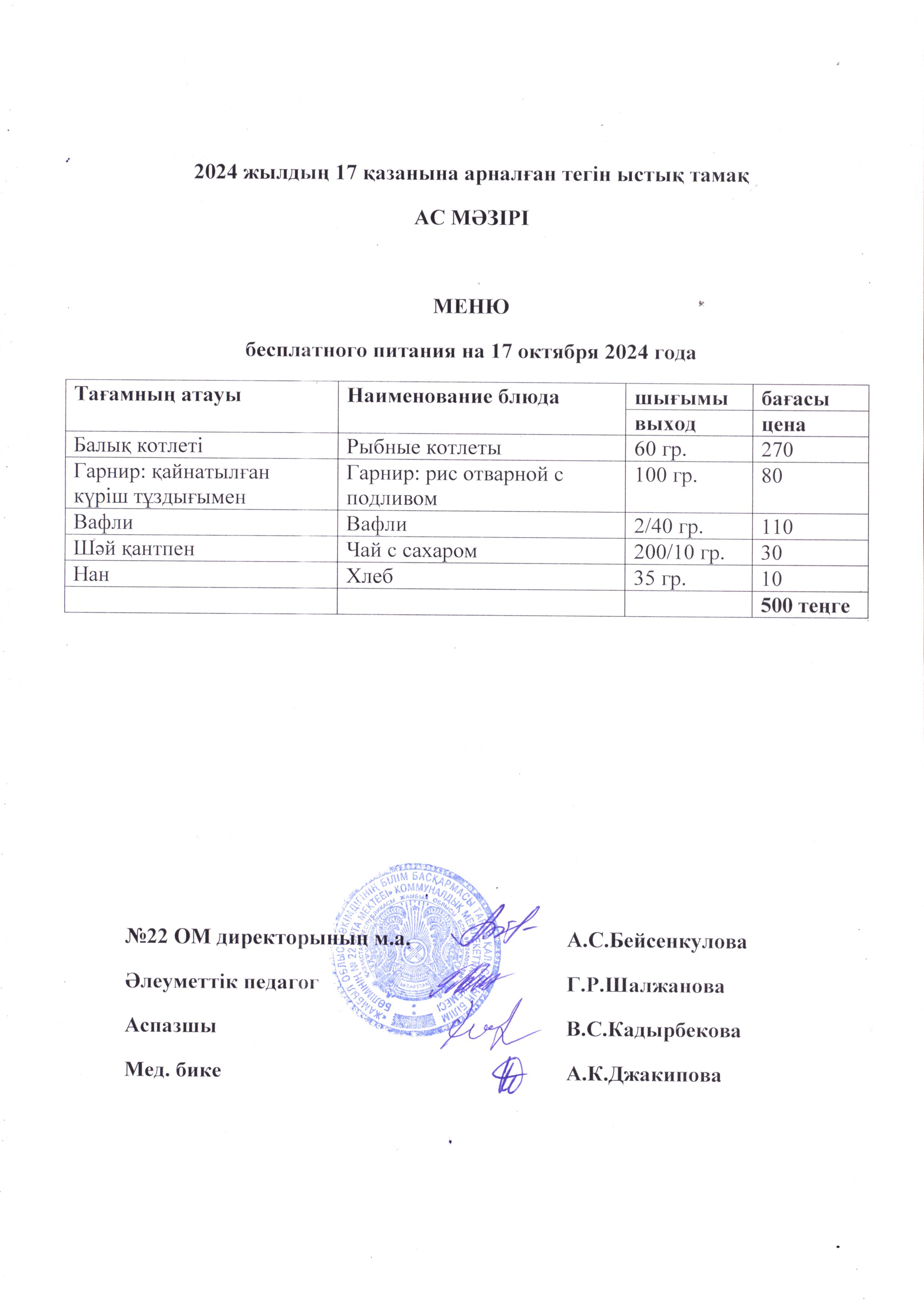 14 октябрь 2024 0 1 2 3 4 5 2024 жылдың 14 қазаны мен 18 қазаны аралығындағы апталық және күндік ас мәзірі