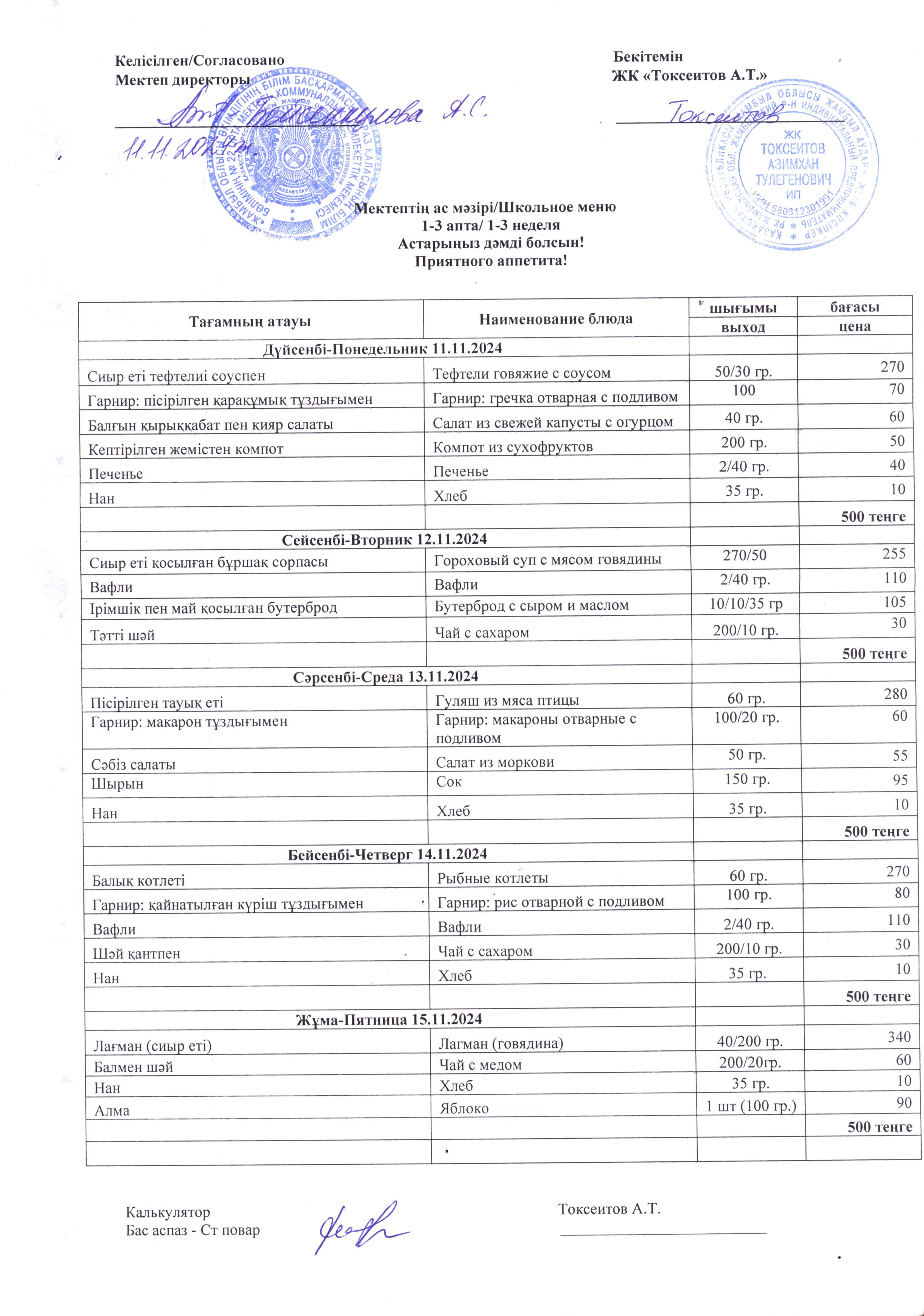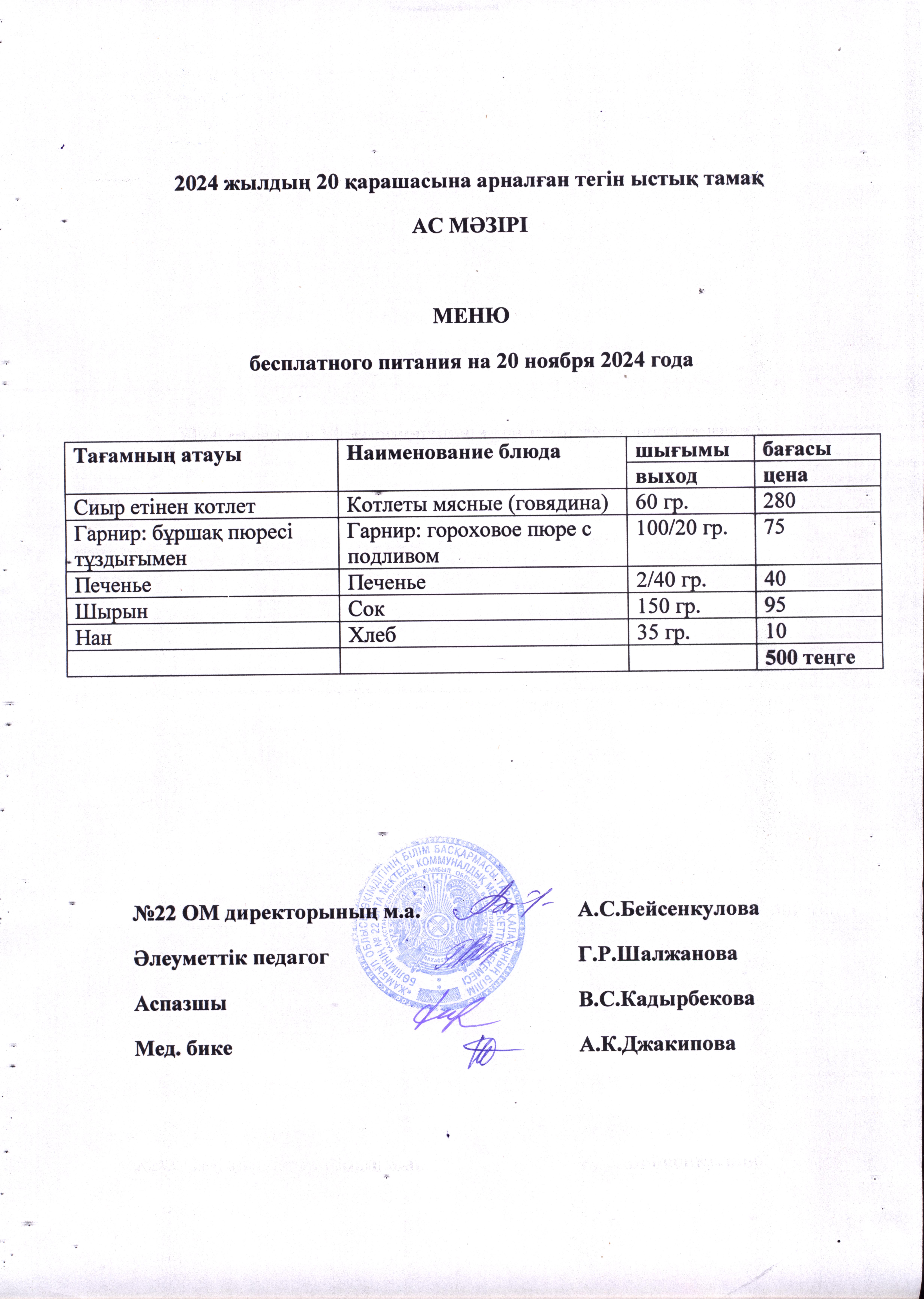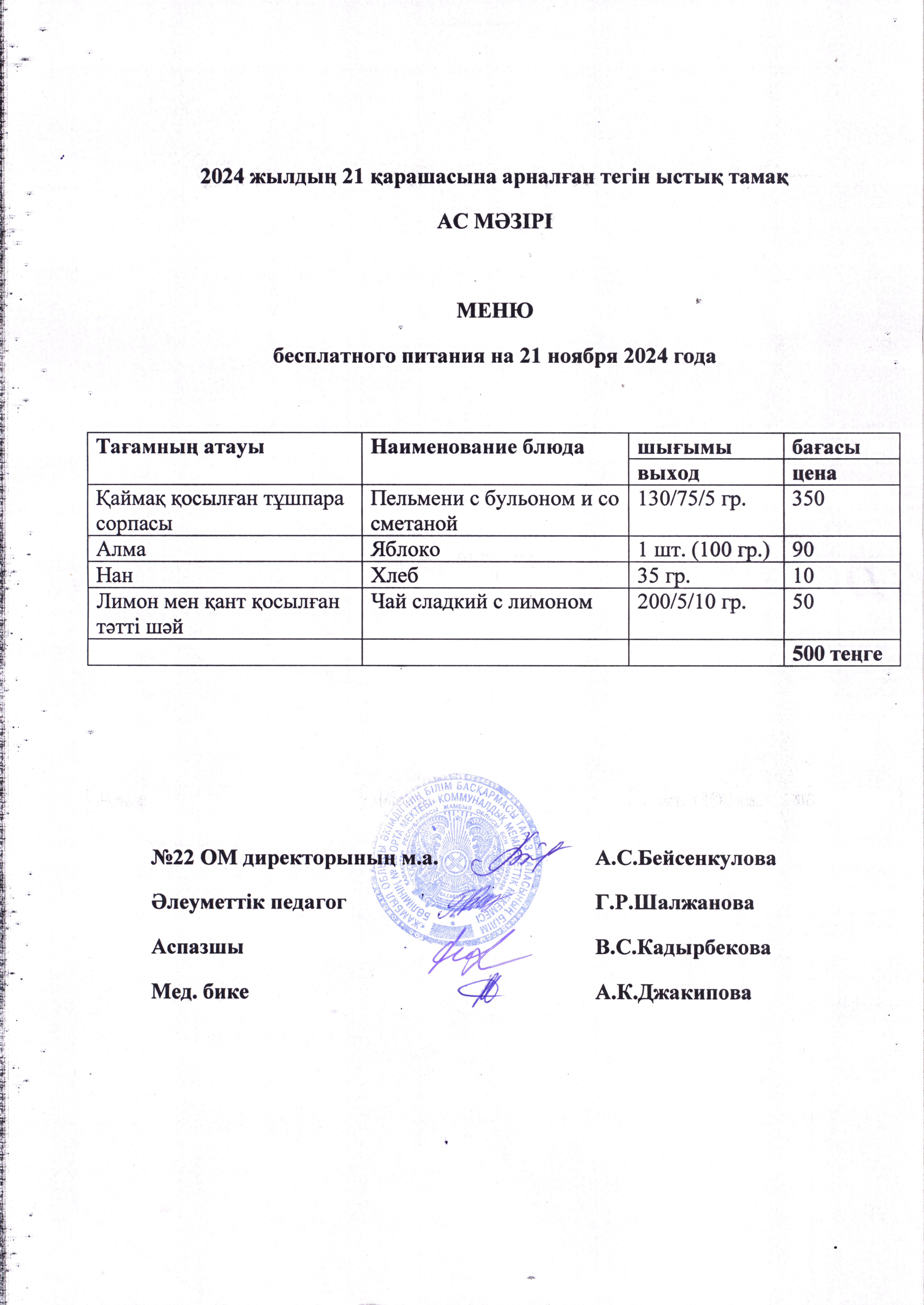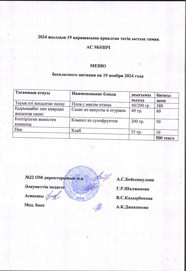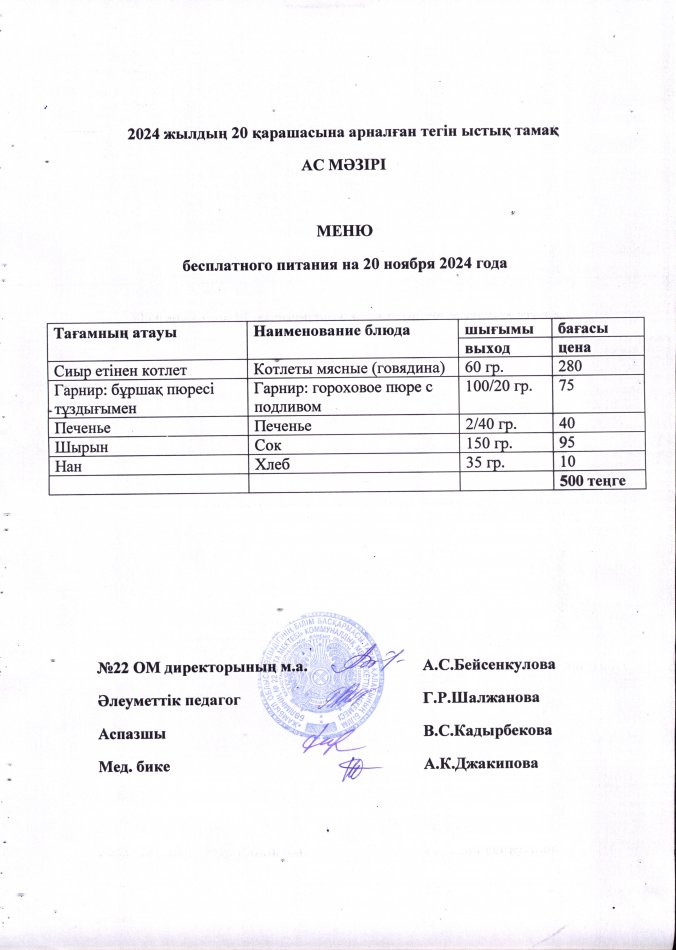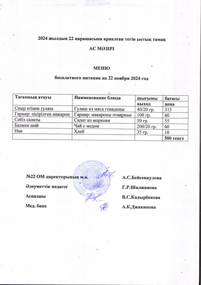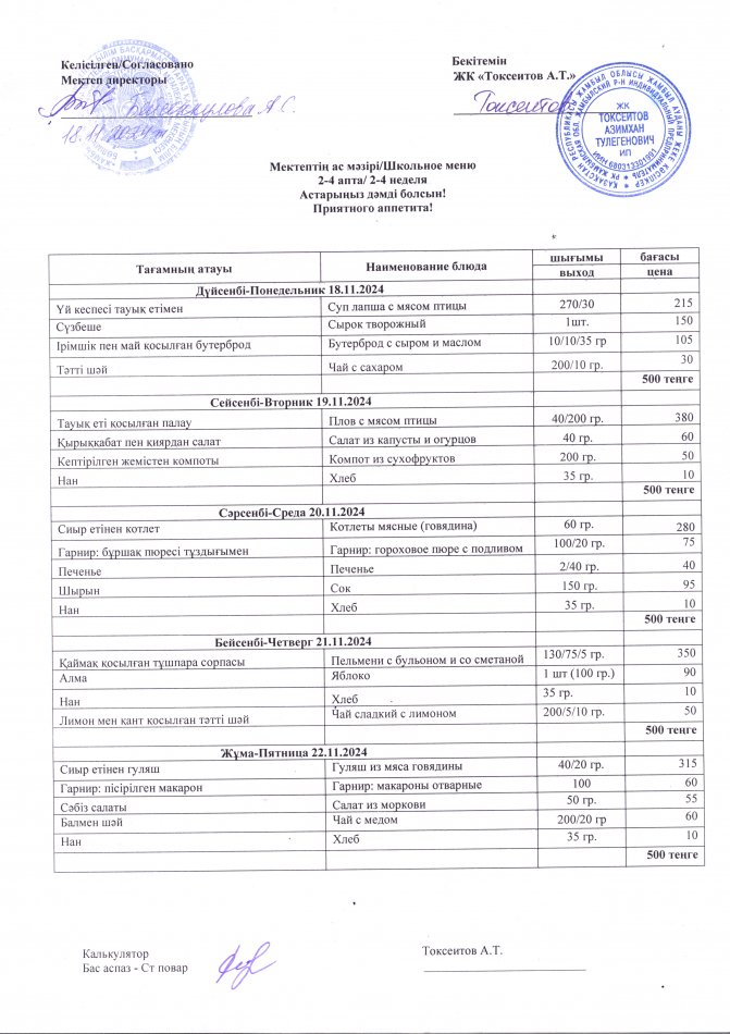 18 ноябрь 2024 0 1 2 3 4 5 2024 жылдың 18 қарашасынан 22 қарашасына дейінгі тегін тамақ ас мәзірі. Меню бесплатного питания с 18 по 22 ноября 2024 года