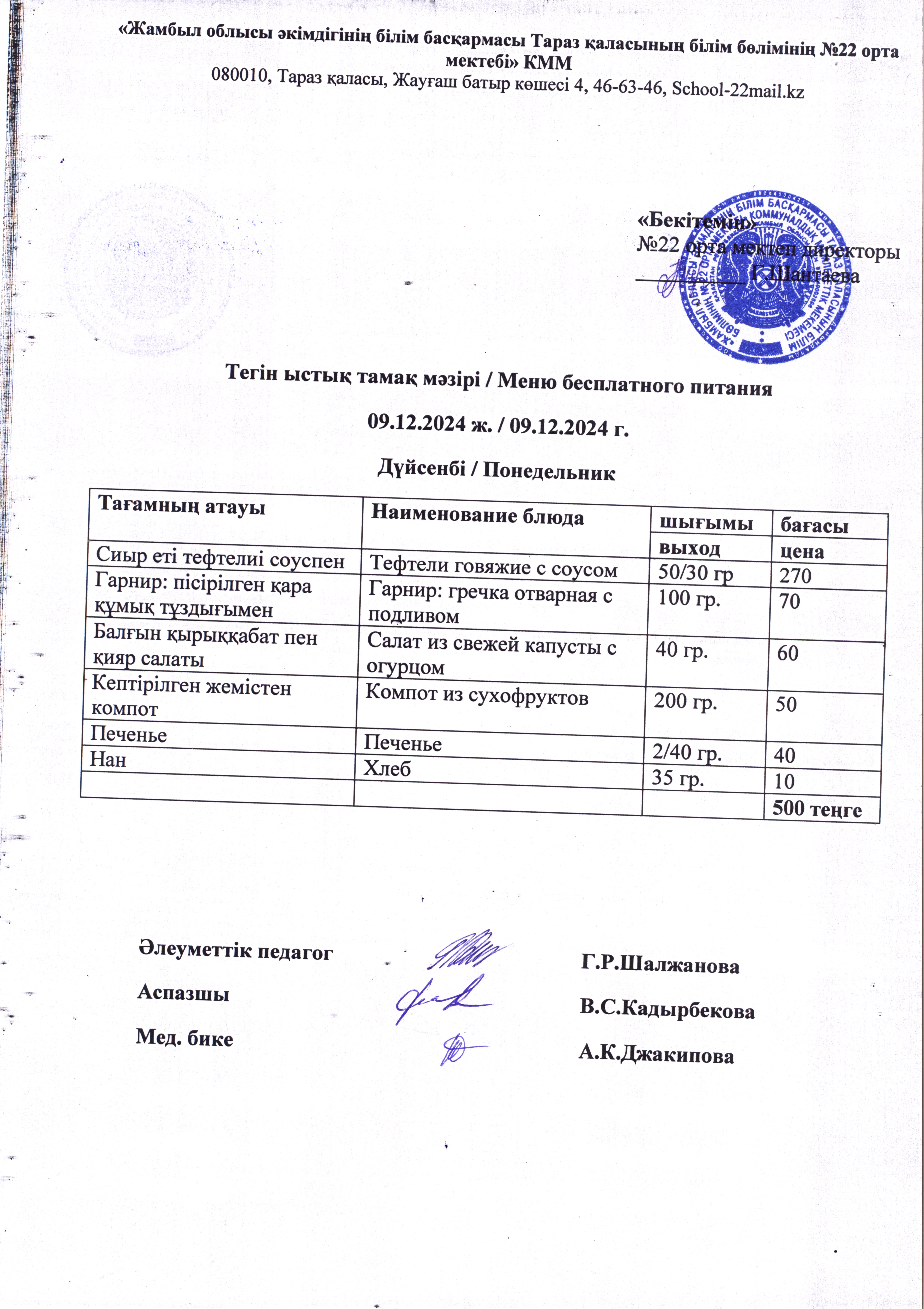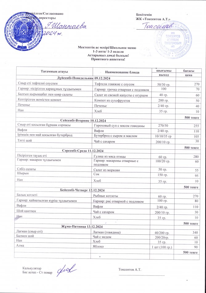 09 декабрь 2024 0 1 2 3 4 5 2024 жылдың 9 желтоқсанынан 13 желтоқсанына дейінгі тегін тамақ ас мәзірі / Меню бесплатного питания с 9 по 13 декабря 2024 года