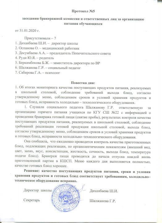 07 февраль 2020 0 1 2 3 4 5 Протокол заседания бракеражной комиссии и ответственных лиц за организацию питания обучающихся от 31.01.2020 года