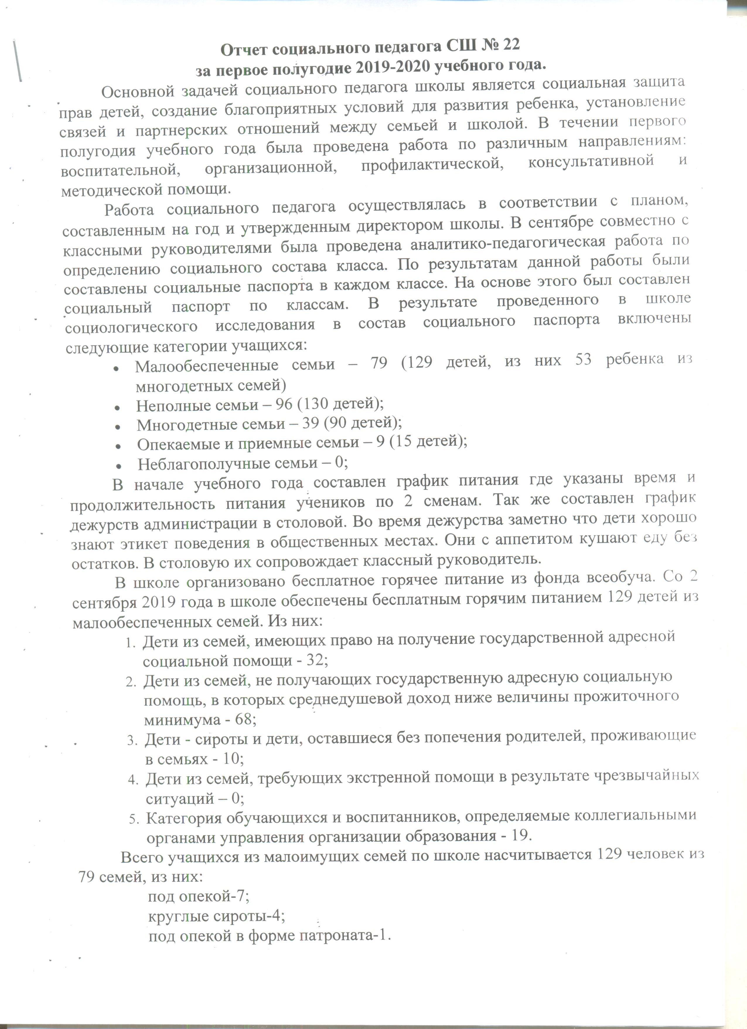 07 февраль 2020 0 1 2 3 4 5 Отчет социального педагога СШ №22 за первое полугодие 2019-2020 учебного года