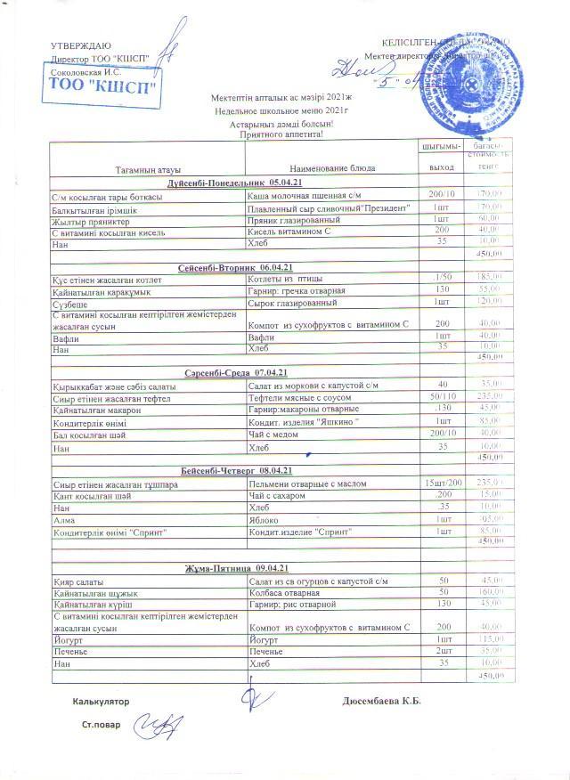 Меню с 5 по 9 апреля » №22 орта мектеп