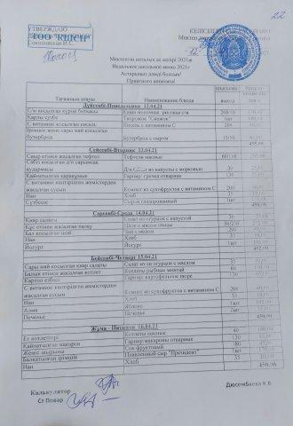 Меню горячего питания в буфете с 12 по 16 апреля 2020-2021 учебного года. » №22 орта мектеп